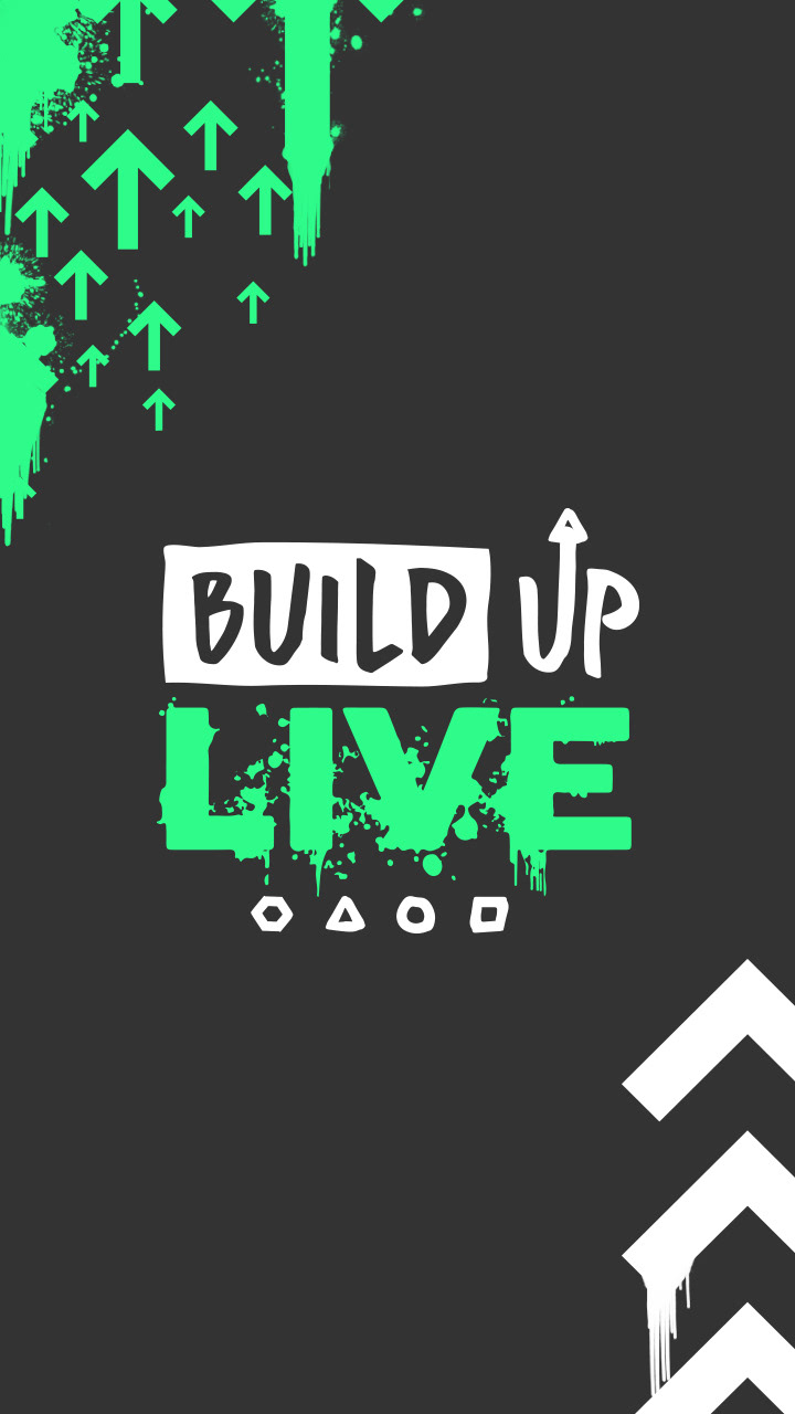 "BUILDup LIVE" was a pilot expanding the 15 minute "BUILDup" format into a full weekly variety show with celebrity guests, sketches and fun audience interaction. Below: the logo for "BUILDup Live"